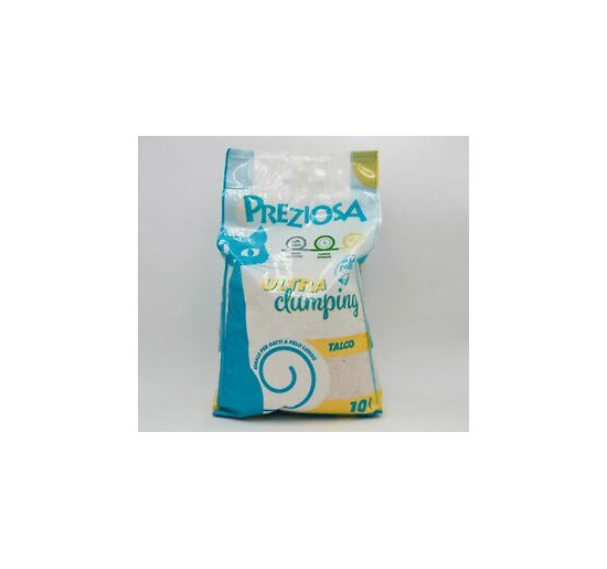 Preziosa Ultra Clumping talcoè una lettiera per gatti agglomerante a granulato fine, naturale, pratica e molto assorbente, trattiene perfettamente i cattivi odori. Per un’ottimale igiene della lettiera del gatto. Agglomerante, pratico e pulito. Assorbe liquidi formando agglomerati. Non sarà necessario sostituirla completamente in modo frequente, basterà, con l’aiuto di una paletta, eliminare le parti agglomerate e la toilette del vostro gatto si manterrà fresca e asciutta a lungo. Profumazione al talco