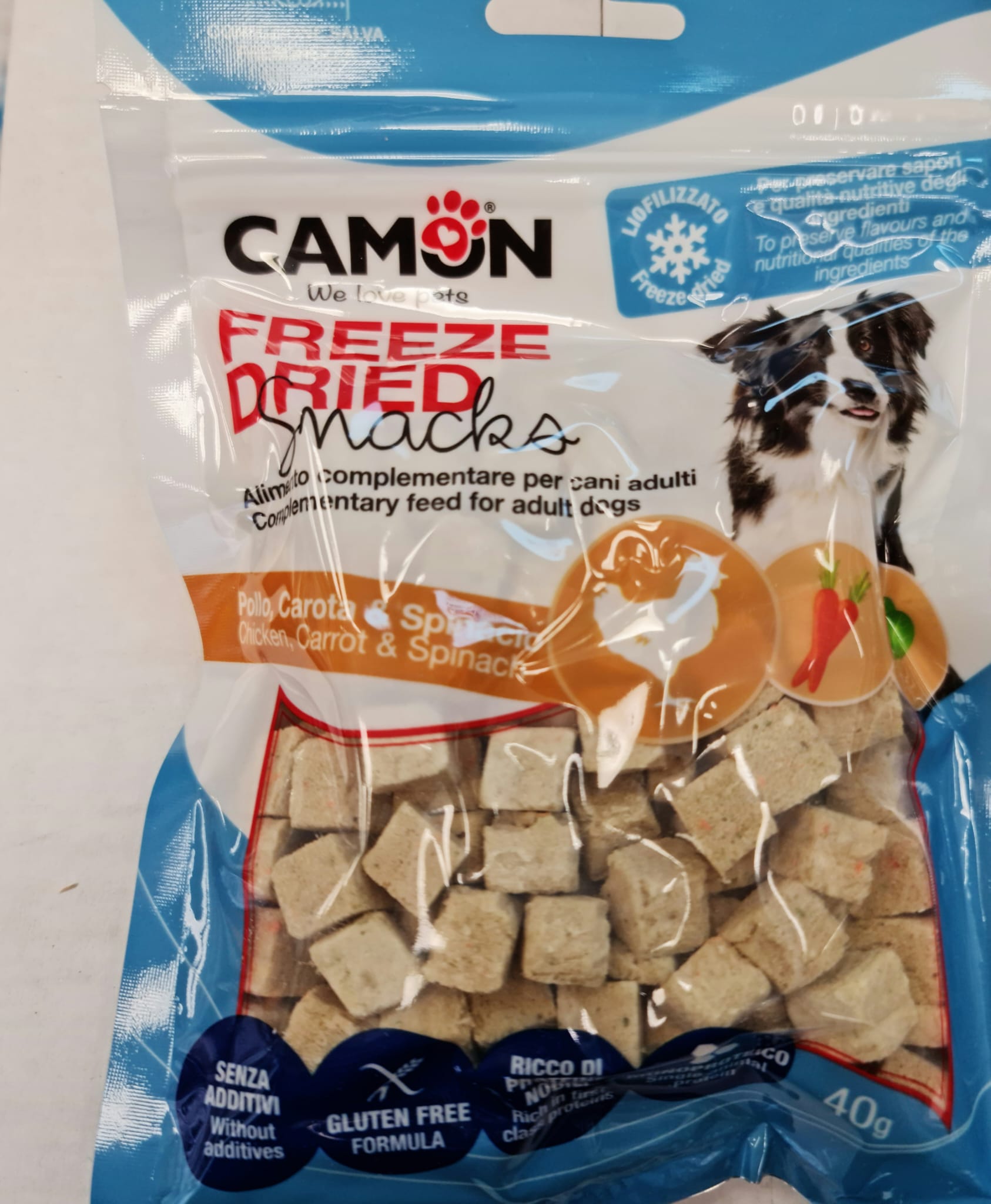 CAMON DADINI DI POLLO LIOFILIZZATI CON CAROTE E SPINACI