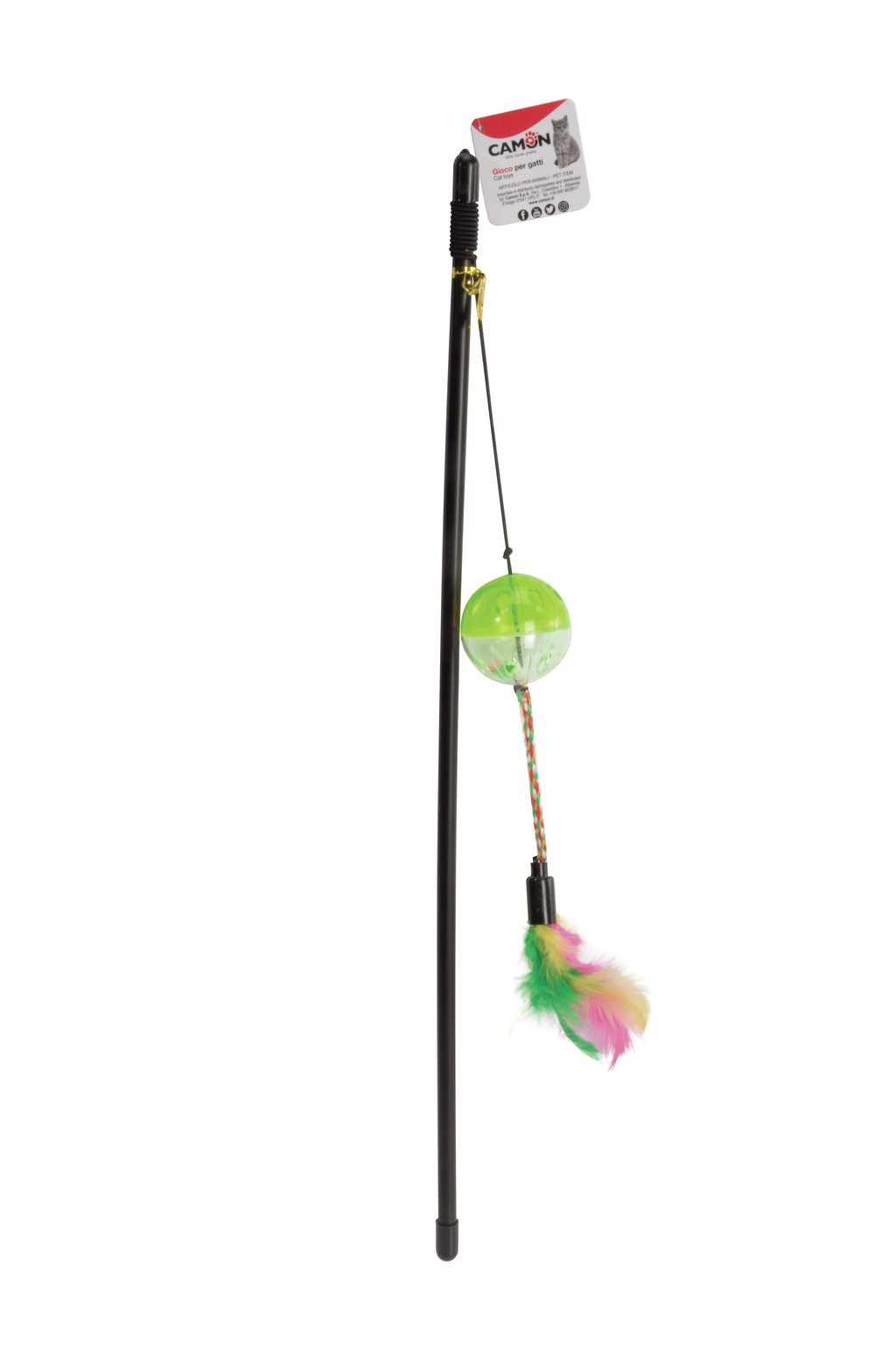 CAMON GIOCO PER GATTI CANNETTA IN PLASTICA CON SFERA E SONAGLIO