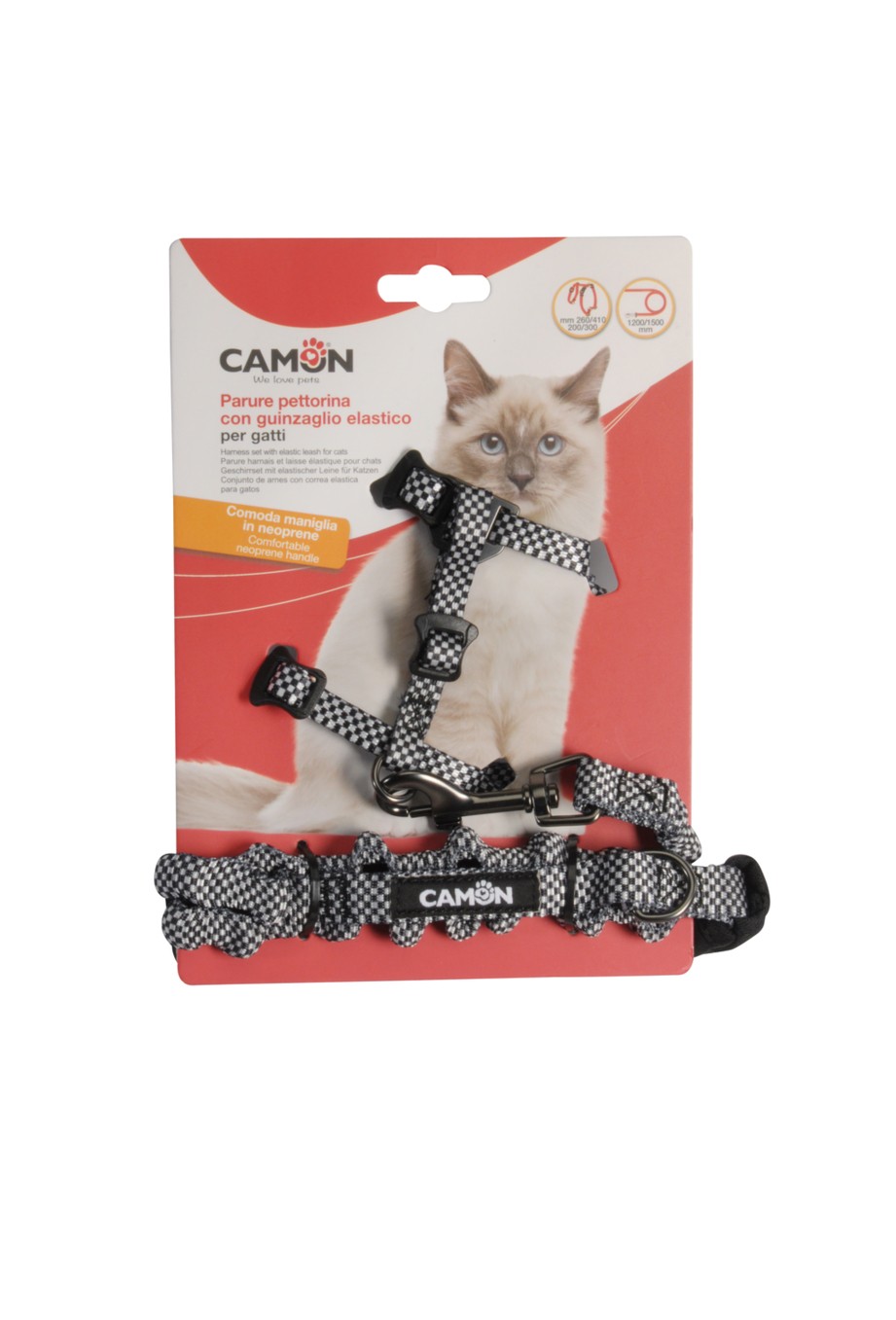 CAMON PARURE PER GATTI PETTORINA AD H CON GUINZAGLIO ELASTICO E MANIGLIA IN NEOPRENE