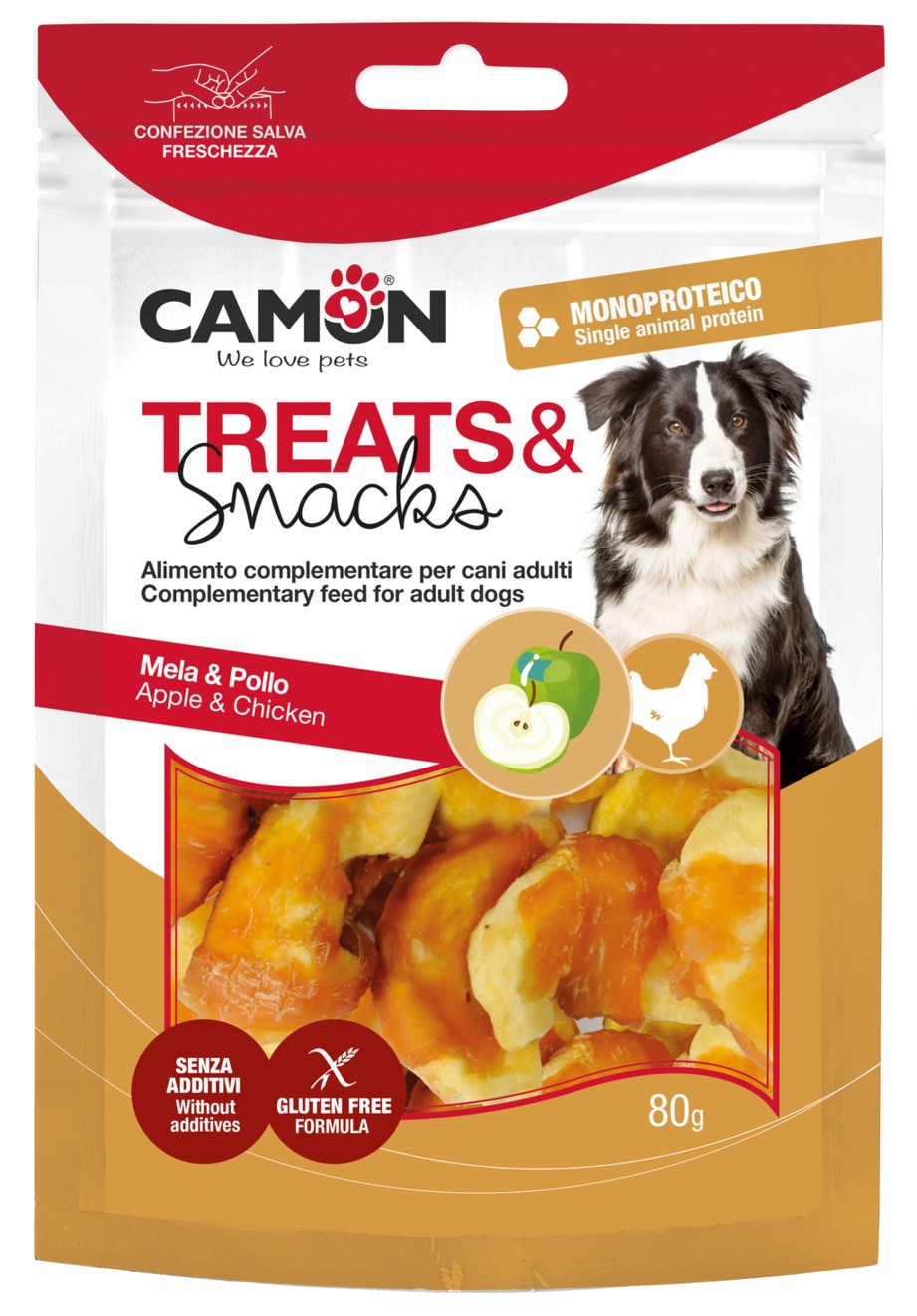 Questi snack, a base di pollo e mela, sono gustosi spuntini da utilizzare in qualsiasi momento della giornata calibrando la somministrazione alimentare giornaliera in base alla taglia dell’animale.