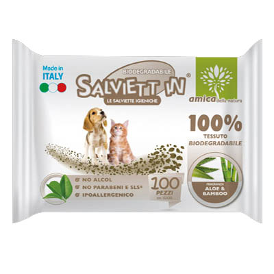 Salviett’in  sono salviette umidificate formato XXL 30×15 100 Pezzi. 100% tessuto biodegradabile. No alcol, no parabeni, ipoallergenico.