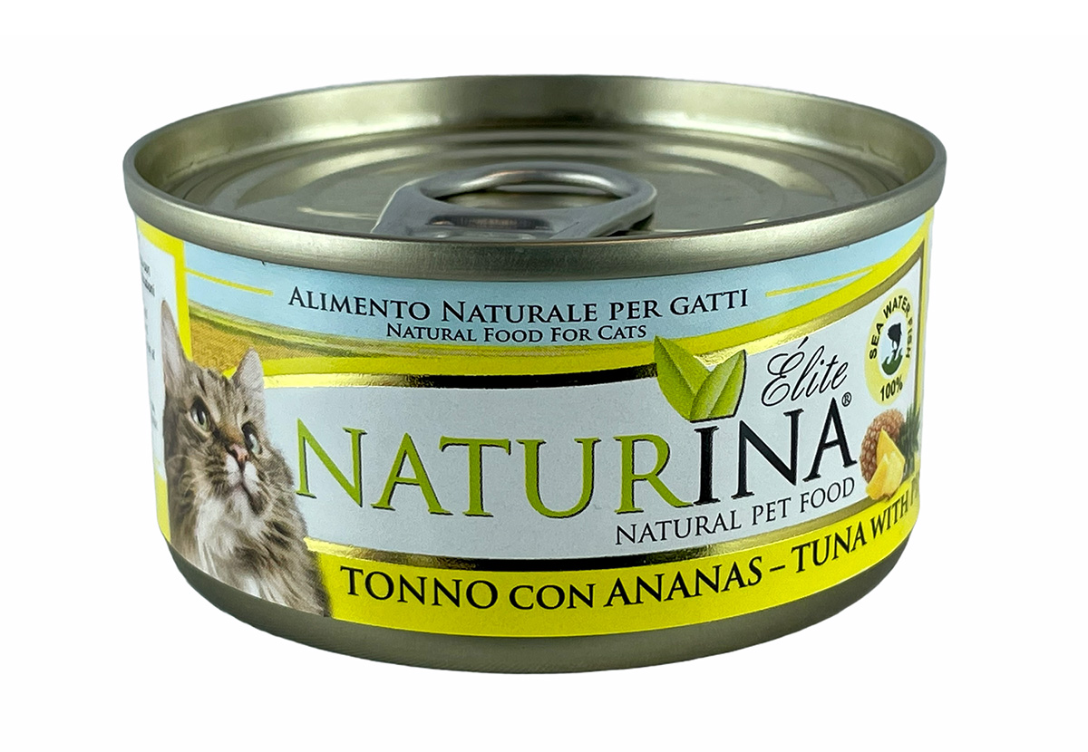 NATURINA ELITE TONNO con ANANAS è un alimento complementare per gatti adulti al naturale: cucinato al vapore e conservato in acqua di cottura (no gelatina). Realizzato con parti pregiate di tonno e ananas. Senza additivi, coloranti e conservanti. Istruzioni per l‘uso: servire a temperatura ambiente.
