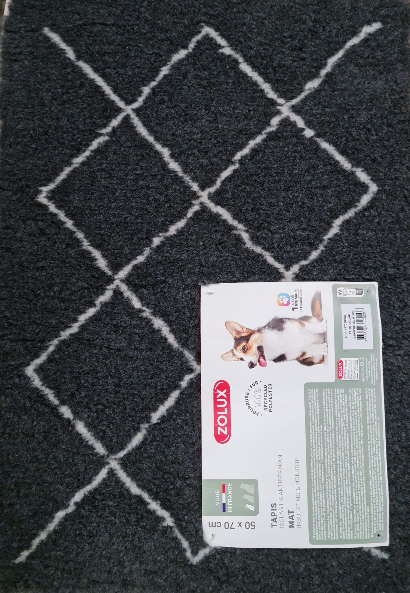 Zolux presenta i suoi nuovi tappeti isolanti per cani. La pelliccia con cui sono realizzati, con densità di 1200g/m², è prodotta in Francia con poliestere 100% riciclato; la sua struttura isola il cane dai pavimenti freddi e evita la dispersione del calore corporeo.