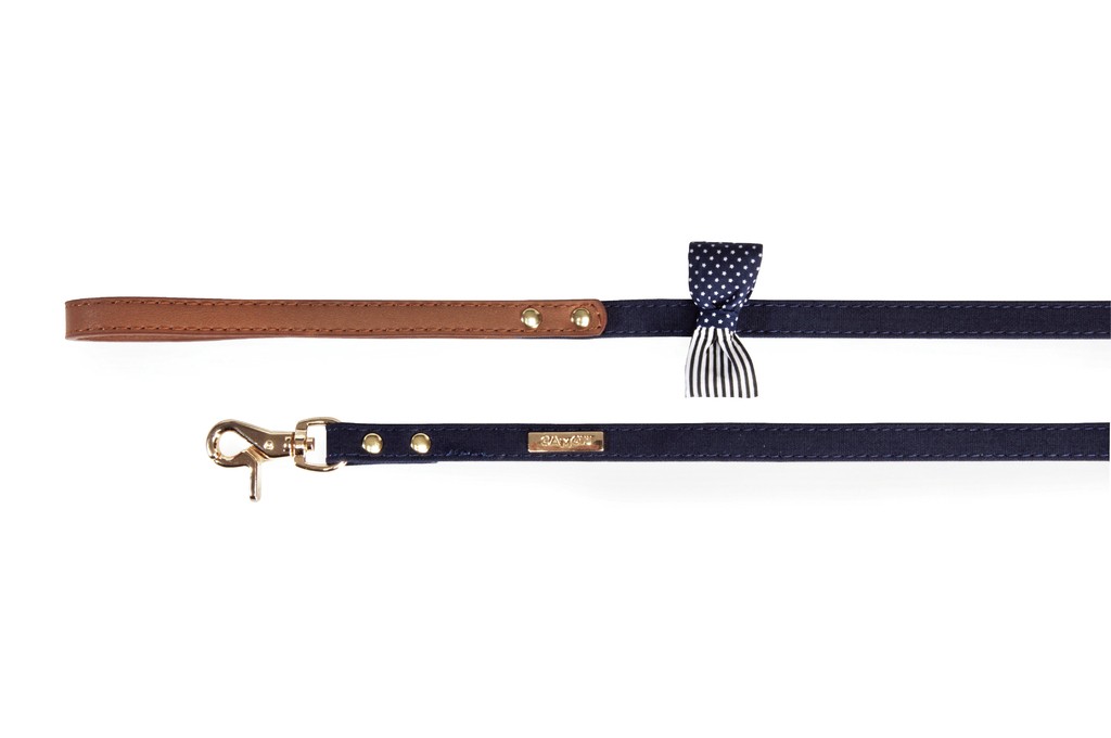 Grazioso guinzaglio in vero cuoio decorato con fiocco in cotone,con trama "american flag".