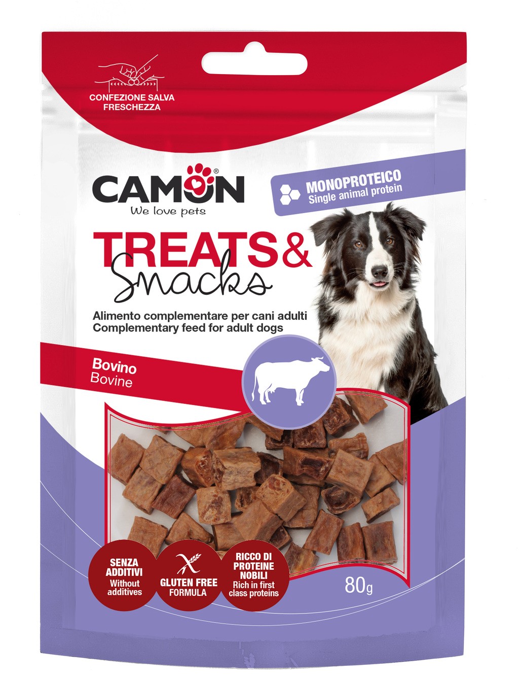 Deliziosi snack per cani nella forma di dadini di manzo.