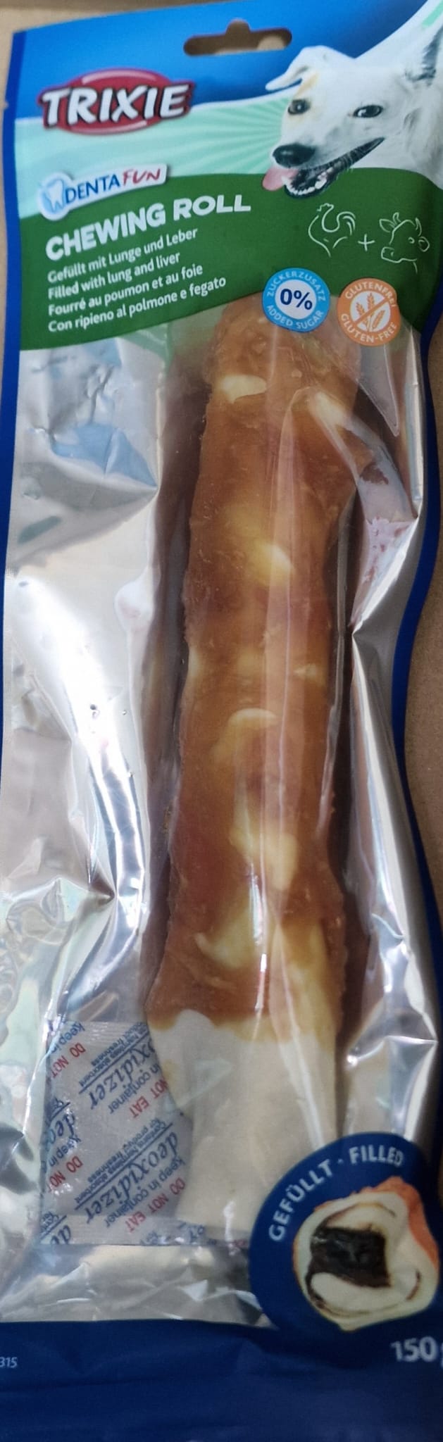 TRIXIE DENTA FUN CHEWING ROLL BASTONCINO AL POLLO CON RIPIENO AL POLMONE E FEGATO