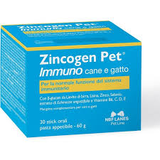 Zincogen Pet Immuno pasta per la sua particolare formulazione con β -glucani, lisina, zinco, selenio, estratto di Echinacea angustifolia e vitamine B6, C, D, E contribuisce al normale funzionamento del sistema immunitario del cane e del gatto supportando le capacità naturali di difesa dell’organismo.