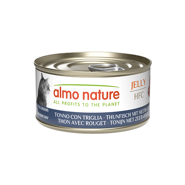 La linea HFC Jelly è preparata con ingredienti HFC, cioè in origine idonei al consumo umano e ora utilizzati nei nostri alimenti per gatti. La garanzia che sceglieresti per te. Una ampia gamma di alimenti umidi complementari preparati con carne o pesce HFC. Cucinate semplicemente in brodo, senza additivi chimici o coloranti, grazie alla loro gelatina vegetale costituiscono anche un aiuto per la rimozione dei boli di pelo. Almo Nature suggerisce di alternare le diverse fonti proteiche per assicurare una alimentazione varia e soddisfare i gusti di tutti i gatti, anche quelli più esigenti! La confezione in latta e l'etichetta in carta sono entrambe riciclabili e, se smaltite correttamente, possono essere riutilizzate come materia prima per altri imballi. HFC Jelly – deliziosi filettini di carne o pesce HFC in gelatina – disponibili in lattine da 70 g. Almo Nature è il brand attivista 100% proprietà della Fondazione Capellino.