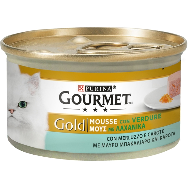 Gold Mousse con verdure: deliziose ricette accompagnate da verdure selezionate, attentamene preparate per offrire al tuo gatto il piacere di una sensazione morbida e delicata.