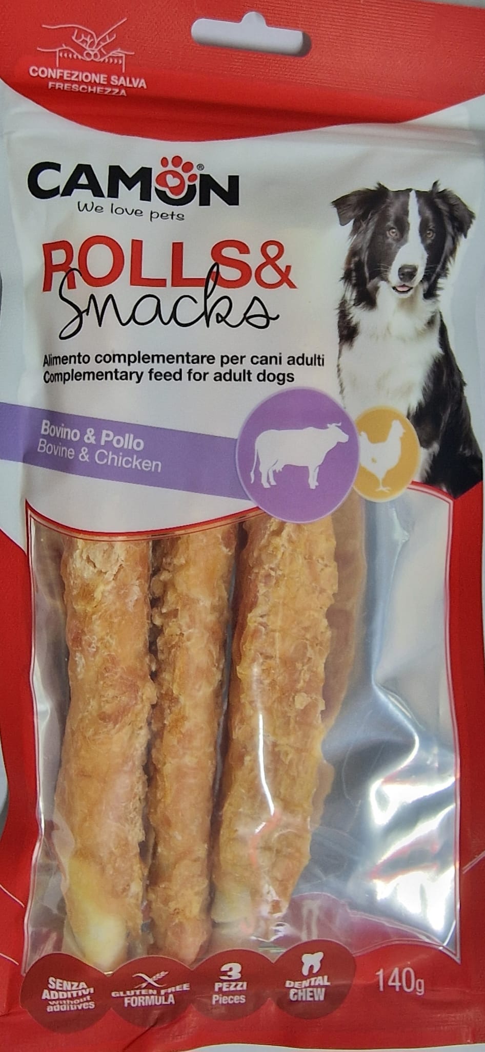 ISTRUZIONI PER L’USO Dare 1 pezzo, come premio/snack/gioco, a cani di media/grande taglia e di età superiore a 4 mesi adattando di conseguenza la razione alimentare giornaliera. Lasciare sempre a disposizione del cane acqua fresca e pulita. Tenere sempre sotto controllo il cane mentre consuma lo snack. Conservare in luogo fresco ed asciutto. Rimuovere dalla confezione la bustina di disossidante prima dell’uso.
