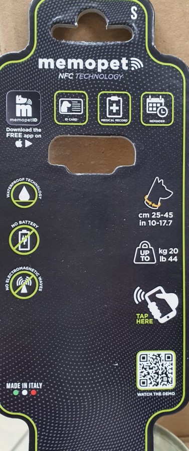 Grazie alla tecnologia NFC integrata che permette di riporre nel collare, tramite l' app memopetID , tutte le informazioni personali e sanitarie relative al proprio animale domestico, che viaggerà sempre con esso.