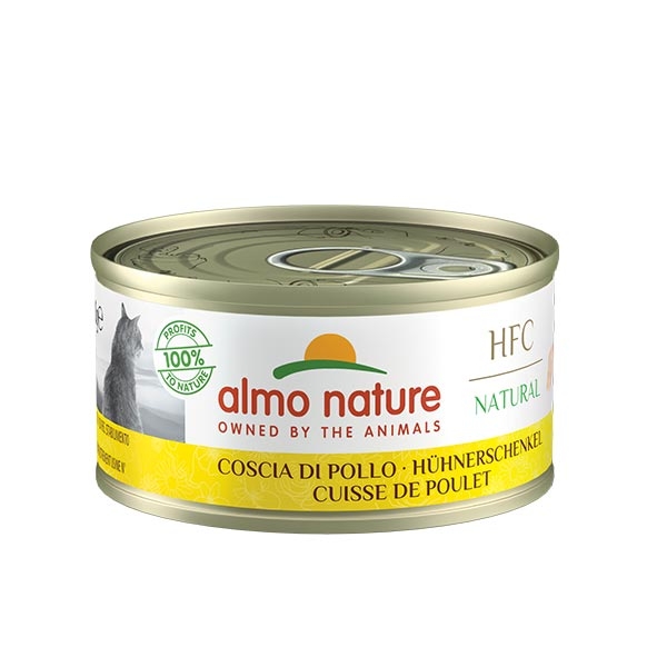 La qualità legendaria di Almo Nature oggi è ancora più trasparente: la sigla HFC certifica l'origine degli ingredienti impiegati nella ricetta, in origine idonei al consumo umano. Preparate con pochi ingredienti e cucinate semplicemente in brodo, le ricette HFC sono ideali per idratare naturalmente il gatto, grazie al loro ricco brodo di cottura. HFC Natural 70g: la lattina più famosa di Almo Nature e la sua ricetta tradizionale.