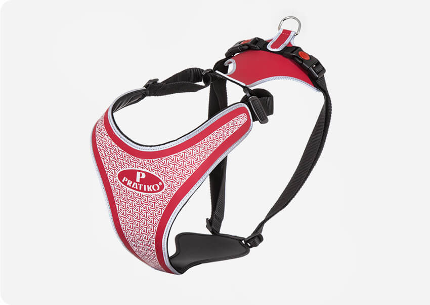 Per la prima volta nella sua storia, Pratiko si discosta dalle pettorine regolabili e a V, introducendo una novità assoluta per il rinomato marchio: la Pettorina HanatomiKa: un rivoluzionario accessorio ad H, nato con la prerogativa di essere di facile indossamento e di assoluto confort. E’ stato studiato infatti da veterinari e addestratori per risolvere la fastidiosa problematica degli strappi che il cane più vivace inesorabilmente può dare. Il pettorale è imbottito, dotato di robuste microregolazioni realizzate in materiale innovativo che offrono massimo confort. La pettorina si apre e si chiude agevolmente grazie al rapido sgancio: è regolabile per adattarsi alla taglia dell’amico a quattro zampe. Realizzato con materiali resistenti per resistere gli urti e non danneggiare il pelo, anche quello dei cani piu corti, senza tralasciare l’eleganza e la bellezza. Pettorina è stata studiata per adattarsi al meglio alla forma del collo e del petto: risvolti a contatto con il pelo sono rifiniti con una speciale cucitura di sicurezza che evita le irritazioni da sfregamento anche nei cani con pelo raso. La pettorina Hanatomika è realizzata artigianalmente, tenendo conto sia della sicurezza che del confort.