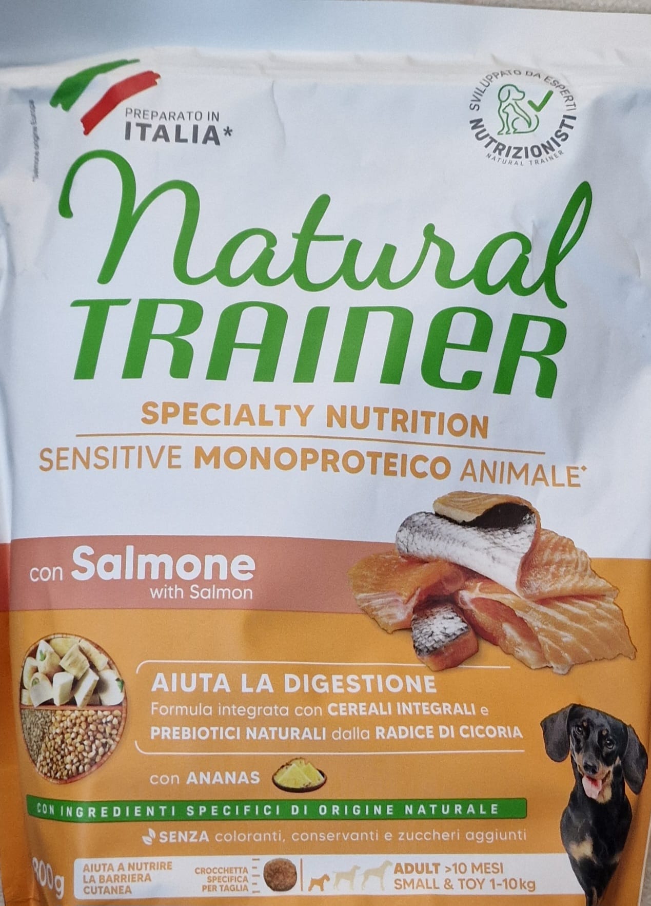 TRAINER NATURAL SENSITIVE NO GLUTEN SMALL & TOY ADULT CON SALMONE