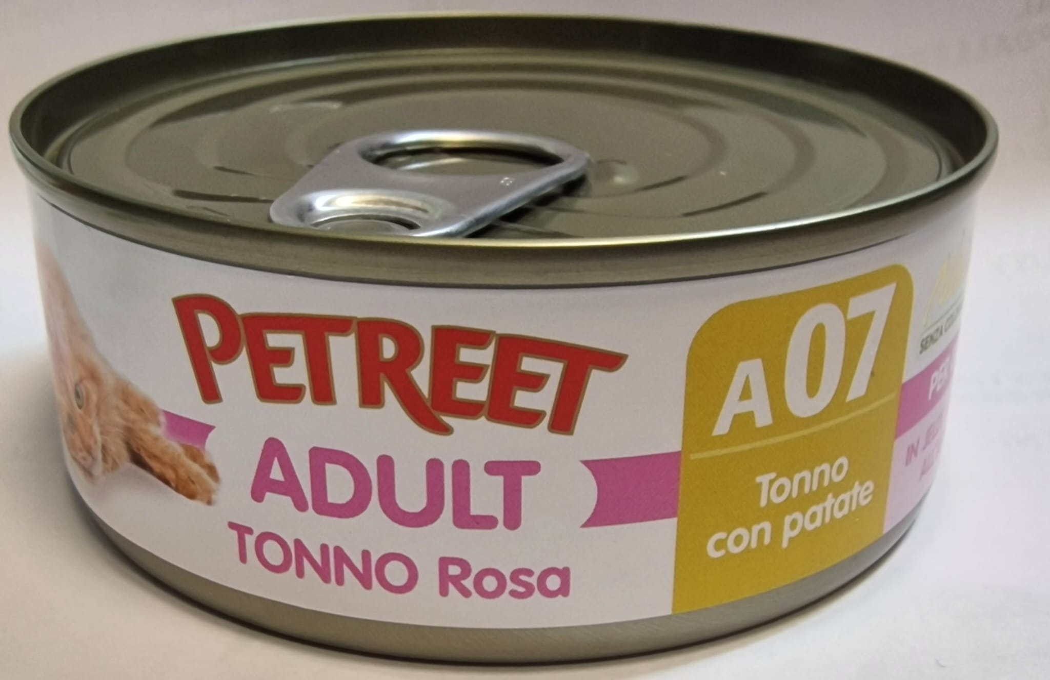 La qualità del pregiato Tonno Rosa abbinata a nutrienti patate per offrire al tuo gatto un pasto completo, senza coloranti né conservanti e materie prime 100% naturali.