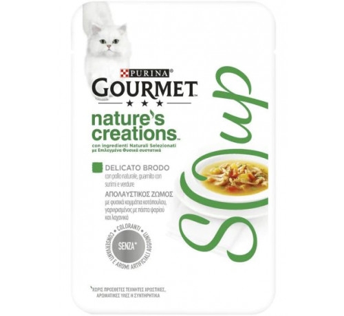 NESTLE' PURINA GOURMET SOUP CON FIOCCHI DI POLLO NATURALE E GUSTOSE VERDURE