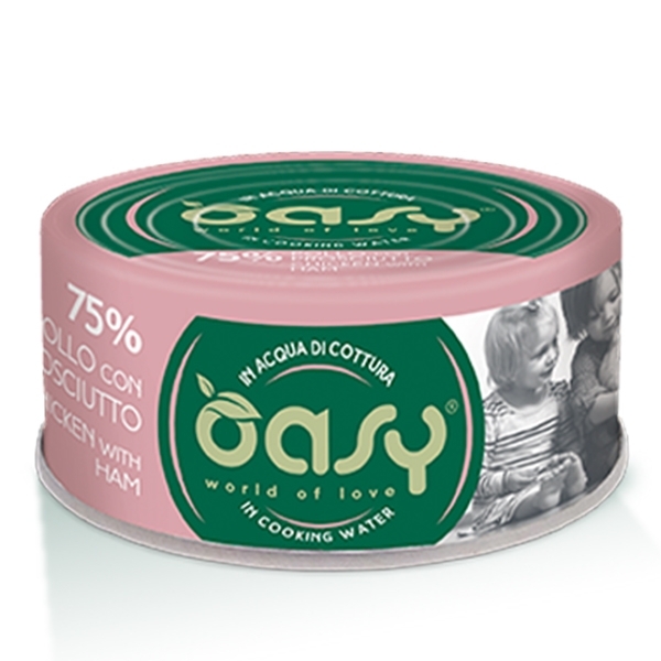 OASY WET CAT MORE LOVE POLLO CON PROSCIUTTO DI POLLO IN ACQUA DI COTTURA