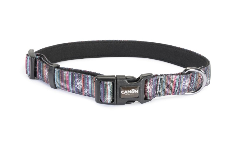 Collare regolabile in nylon, caratterizzato dalla particolare fantasia multicolore.