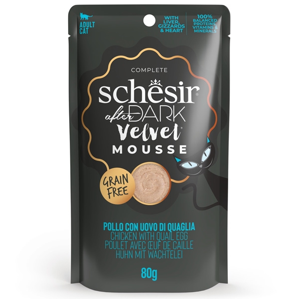 Il gatto ha una lunga storia di predatore notturno, che al calare del buio va in cerca di piccole prede...Ed ancora oggi, pur vivendo in ambiente domestico, non ha perso l'istinto né le esigenze nutrizionali di vero carnivoro. Per questo Schesir After Dark è a base di carne con veri pezzetti di organi ricchi in nutrienti, ossia gli ingredienti che il gatto si procurerebbe in natura, è ricco in proteine e non contiene cereali.