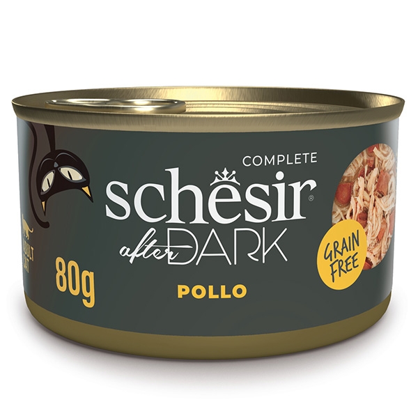 100% PROTEINE, VITAMINE E MINERALI BILANCIATISchesir ci aiuta a rendere felici i nostri gatti e cani attraverso l'alimentazione, perché è la scelta migliore per loro: ricette create per rispondere ai loro veri e specifici fabbisogni nutrizionali, a base di ingredienti di qualità minimamente processati, in tante gustose varietà per accontentare tutte le loro esigenze.Il gatto ha una lunga storia di predatore notturno, che al calare del buio va in cerca di piccole prede...Ed ancora oggi, pur vivendo in ambiente domestico, non ha perso l'istinto né le esigenze nutrizionali di vero carnivoro. Per questo Schesir After Dark è a base di carne con veri pezzetti di organi ricchi in nutrienti, ossia gli ingredienti che il gatto si procurerebbe in natura, è ricco in proteine e non contiene cereali.