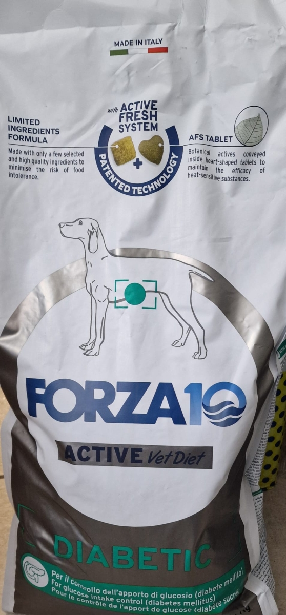 Alimento dietetico completo per cani adulti. Utile per il controllo dell’apporto di glucosio (diabete mellito). Particolare fine nutrizionale: a) controllo dell’apporto di glucosio (diabete mellito); b) riduzione di intolleranze ad ingredienti e sostanze nutritive. Caratteristiche nutrizionali essenziali: a) basso livello di mono- e disaccaridi (fonte di carboidrati: riso); b) utilizzo di fonti selezionate di proteine e carboidrati (pesce di mare e riso ad elevato valore biologico).