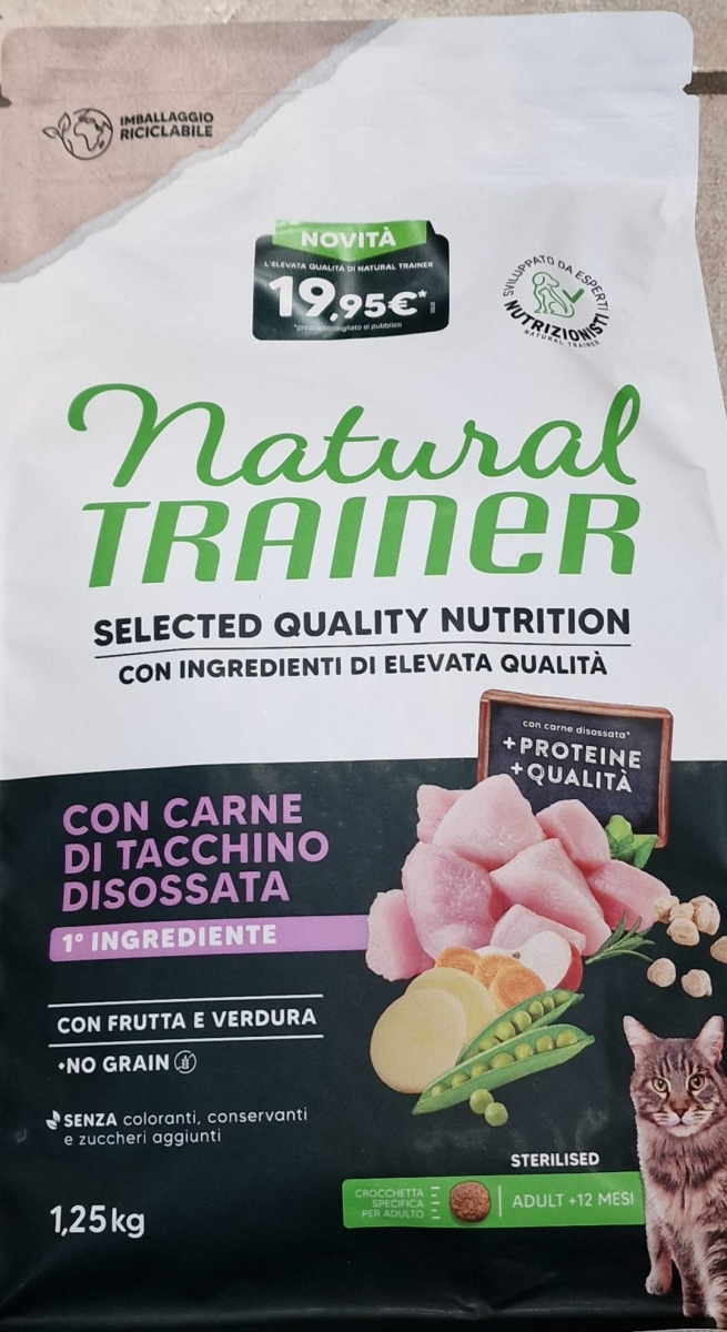 Composizione: Carne di tacchino disossata* 20%, proteine disidratate di pollo, piselli disidratati* 13%, proteine disidratate di maiale, patata disidratata* 7%, amido di pisello*, ceci disidratati* 4%, grasso di pollame*, polpa di barbabietola*, proteine animali idrolizzate (pollame, maiale, pesce), proteine disidratate di tacchino, sostanze minerali, fibra di pisello*, carota disidratata* 0,5% (pari al 4% di carota fresca), mela disidratata in polvere* 0,3% (pari al 2% di mela fresca), alghe marine disidratate (kelp)* 0,01%, rosmarino disidratato* 0,01%. *Ingredienti naturali.