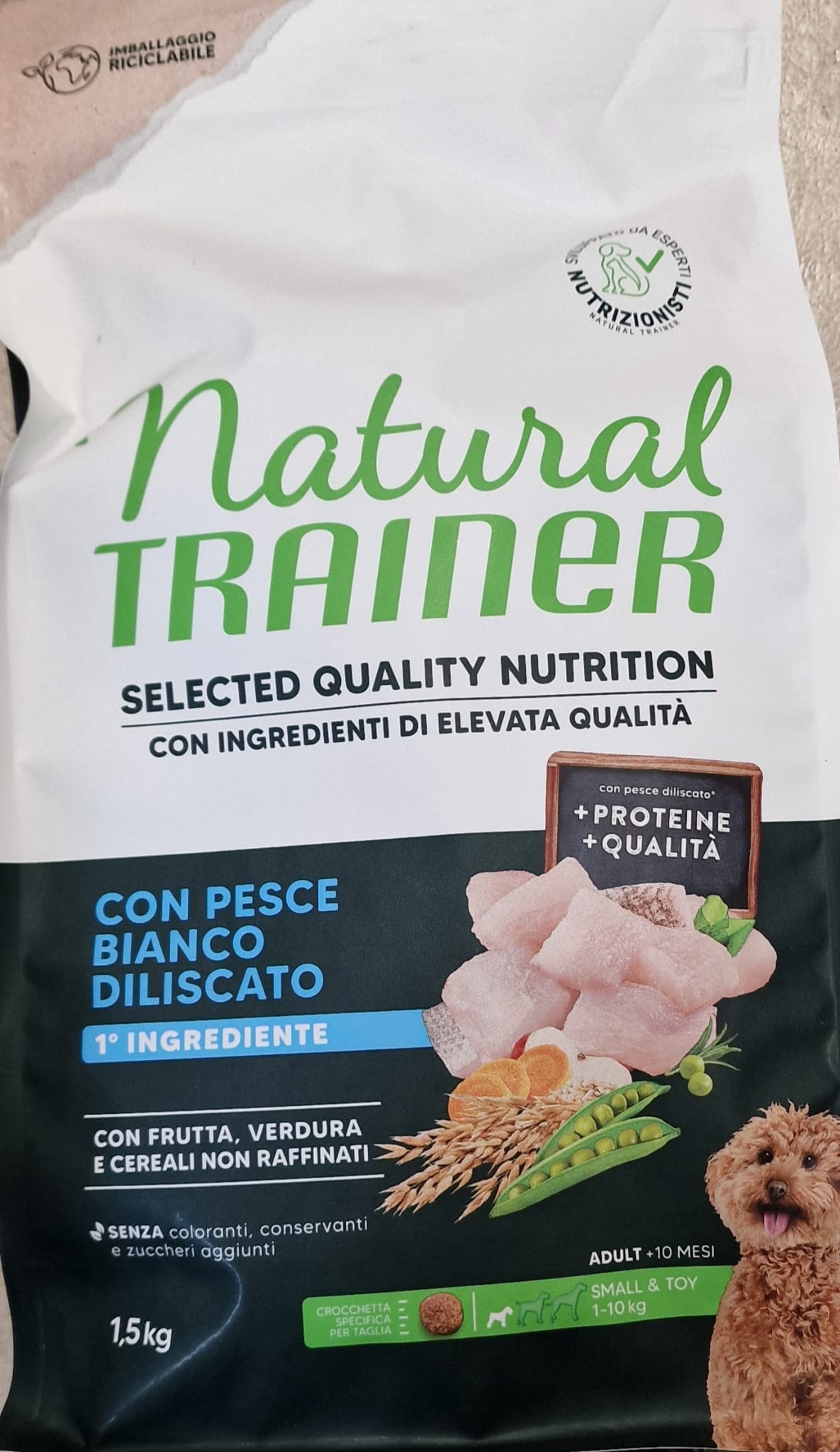 NATURAL TRAINER SELECTED QUALITY NUTRITION ADULT SMALL & TOY CON PESCE BIANCO DILISCATO
