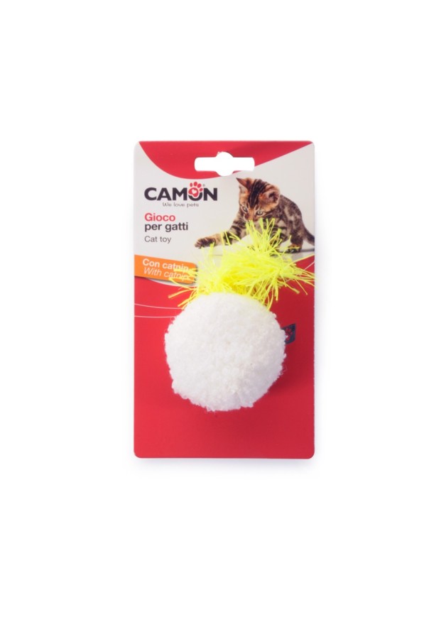 CAMON GIOCO PER GATTI PALLINA IN POLIESTERE CON PIUMA E CATNIP