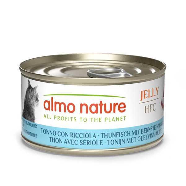 La linea HFC Jelly è preparata con ingredienti HFC, cioè in origine idonei al consumo umano e ora utilizzati nei nostri alimenti per gatti. La garanzia che sceglieresti per te. Una ampia gamma di alimenti umidi complementari preparati con carne o pesce HFC. Cucinate semplicemente in brodo, senza additivi chimici o coloranti, grazie alla loro gelatina vegetale costituiscono anche un aiuto per la rimozione dei boli di pelo. Almo Nature suggerisce di alternare le diverse fonti proteiche per assicurare una alimentazione varia e soddisfare i gusti di tutti i gatti, anche quelli più esigenti! La confezione in latta e l'etichetta in carta sono entrambe riciclabili e, se smaltite correttamente, possono essere riutilizzate come materia prima per altri imballi. HFC Jelly – deliziosi filettini di carne o pesce HFC in gelatina – disponibili in lattine da 70 g. Almo Nature è il brand attivista 100% proprietà della Fondazione Capellino.